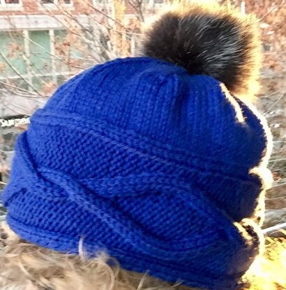 The elegant cloche hat features a cabled band with rolled edge. The cabled section is knit flat seamlessly grafted together. The hat body is picked up from the band and knit in the round. Finish with an optional purchased pom pom and you will be sure to shine! Be sure to check out the companion bulky-weight hat, Big Diamonds in the Rough.
