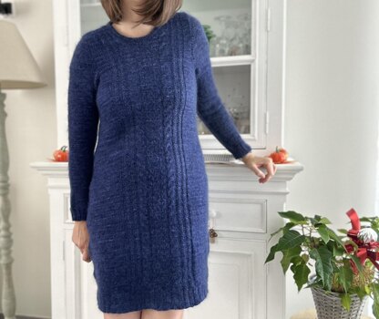 The Diervilla dress is a set-in sleeve pattern with a beautiful cable panel on the front. It is knitted in the round from top to bottom.