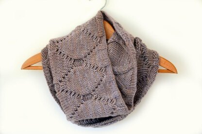 The same pattern that forms a more traditional hourglass cable on the right side creates subtle lozenges with little peek-a-boo purl dots on the reverse, making it a perfect wearable autumnal piece. Pattern provides instructions for adjusting the size of the cowl, covering a range of sizes from 28 in / 70 cm to 48 in / 120 cm with 4 in / 10 cm increments.