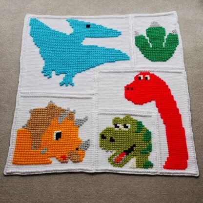 Here I have my Dinosaur Blanket pattern. I was inspired to make this pattern since my next door neighbour has a little boy and is obsessed with them. He helped me pick the colours and it turned out so well. He was one happy little boy!