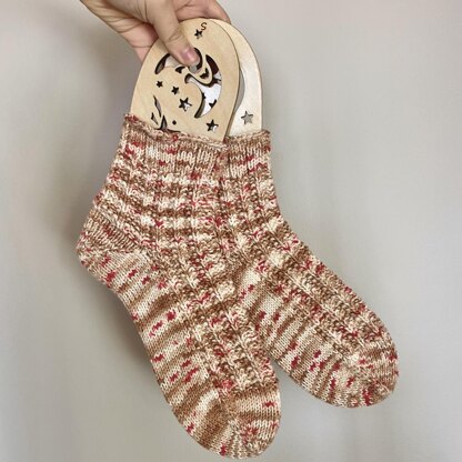 If you are looking for a simple sock to go with any yarn, then this is the pattern for you! An easy seeded ribbing that feels great and has a fair amount of stretch to give your feet a comfortable hug. You can do this with DK yarn or hold fingering double, either way it knits up super fast