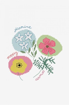 Download this free cross stitch pattern to create your own beautiful blooms using DMC’s iconic stranded cotton embroidery thread. These bright floral poppy, jasmine and cosmos motifs are the perfect way to decorate your space.