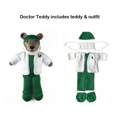 Basic teddy bear knitting pattern PLUS doctor outfit which would make a great thank you gift. The teddy is 43cm (17 inches) tall and you can make this in any colour you choose.
