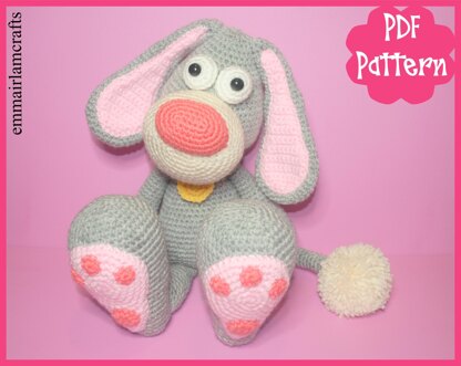 ※ ITEM DETAILS: This listing is for a Bob The Dog crochet pattern in pdf format, NOT a finished item. Finished dog will be approx. 13.5" tall when made with specified DK yarn. Pattern is provided in US abbreviations.