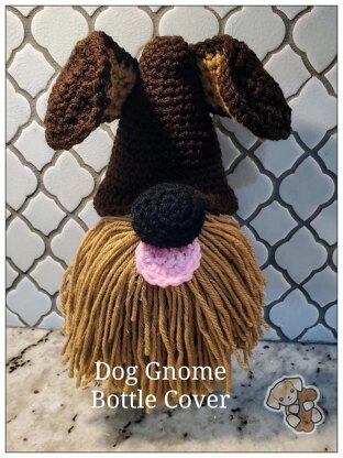 Cute little Doggie Gnome to cover your Mason Jar, Dish Soap Bottle, Wine Bottle, etc. What an adorable way to decorate a plain old bottle. Pattern is simple, but crafting skills (glue gun, making a beard0 are needed. This can be made up in a few hours and given as a gift. Makes a cute house warming gift.
