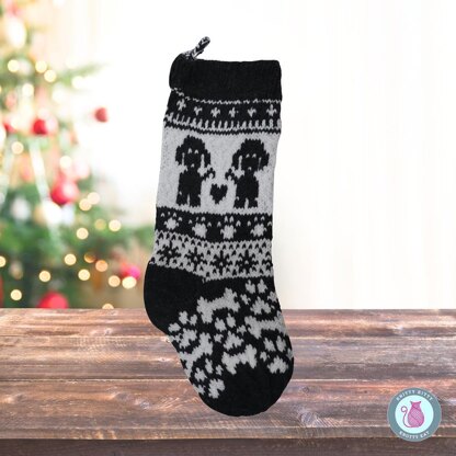 I am excited to share with you a Doggy Christmas Stocking knitting pattern. This is a PDF instant download. This project comes with two patterns so you can either knit this flat with straight knitting needles, or in the round with circular or double-pointed needles.