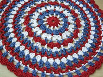 This is an advanced beginners pattern. Stitches used in this pattern are: adjustable ring, slip stitch, chain, single crochet, double crochet, 2 double crochet together, 3 double crochet together (US crochet terms are used). In this pattern there is no explanation on how to crochet these stitches! But it isn’t hard at all to crochet in the round, so why not crochet your own doily in your favorite colors and enjoy the process and the end result!
