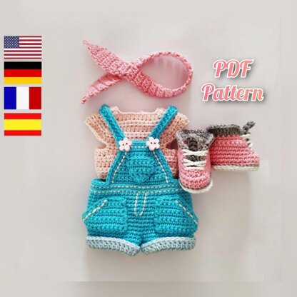 Doll clothes crochet pattern, Amigurumi doll outfits pattern, crochet doll costume 11,8 inch (English, Deutsch, Français, Spanish /Español)
