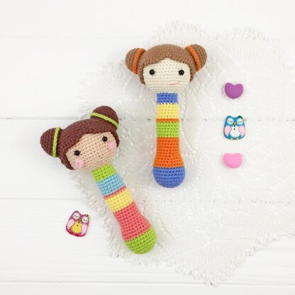 Materials: 1.75 mm hook (0 US), sewing needle, scissors, stuffing material (holofiber is recommended), black round plastic safety eyes (5 mm), plastic rattle insert, stitch markers.