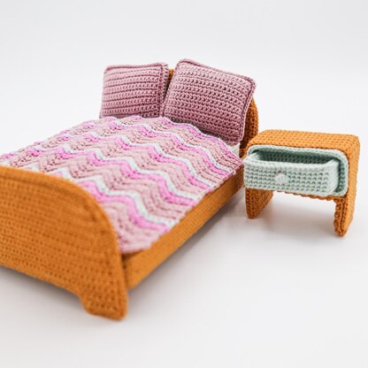 Crochet your own unique dollhouse! This bed and bedside table look difficult to make but it is actually easy. Like any other real bed this one also has a mattress, blanket and pillows. This pattern is written in US terms. The items for the dollhouse fit perfectly in the IKEA FLISAT dollhouse.