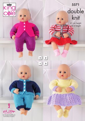 Dolls Clothes in King Cole Dollymix DK - 5571 - Downloadable PDF