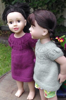 This is a simple little dress knit seamlessly from the top down, starting with a circular yoke. It can be knit to either tunic or dress length depending on your dolly's preference.
