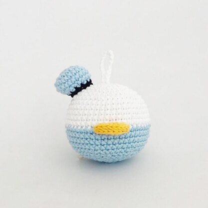The Donald christmas ornament has a diameter of 8 cm (the ball part) when using the materials mentioned above. If you are using yarn with a different gauge the toy’s measurements will change. Feel free to use any yarn you want, the toy itself won’t change, just the size. Make sure you sew tightly every part of the toy.