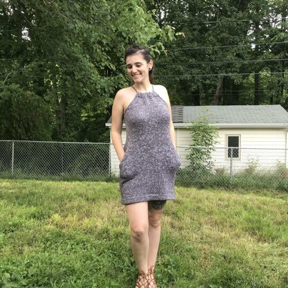 This is a knit dress for the Doris Date Nite Dress. Named after my full of personality mommom, I made this dress with plenty of personality. A double brim hem, open keyhole back, and pockets to store all your mini essentials for a spring date.