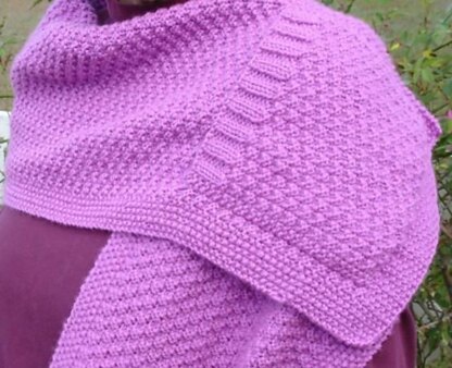 This cozy shawl features two pockets large enough to warm your hands or carry accessories. Moss stitch makes up the border; double Moss is used for the body of the shawl, and a 2/2 ribbing accent pocket openings. This pattern is suitable for sport or DK Yarn.
