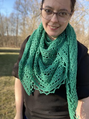This trapezoid shaped shawl is worked from the bottom edge up, and the edging is added last. Size is easily adjustable by adding or subtracting rows and starting chains.