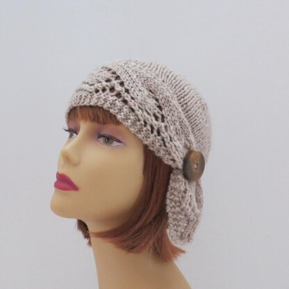 Reminiscent of Victorian times, the Adelaide hat is perfect as a fashion accessory today! Sweet lace and a wavy Stockinette stitch are the perfect complements to the lovely simplicity of the Adelaide design. The trailing band tab can be adorned with your choice of a button, brooch, flower or other embellishment.