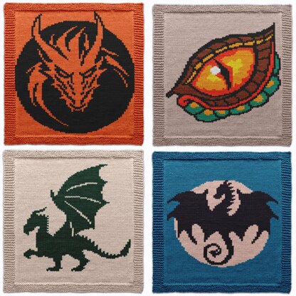 Dragon Knitting Pattern Bundle, 4 Mythical Squares