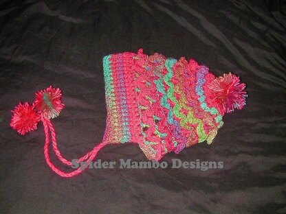 Oversized Bonnet style slouch hat worked in a variation of crocodile stitch. Pictures of almost every step. American Crochet terms. Sample was made in Red Heart Boutique Unforgettable, color Parrot.