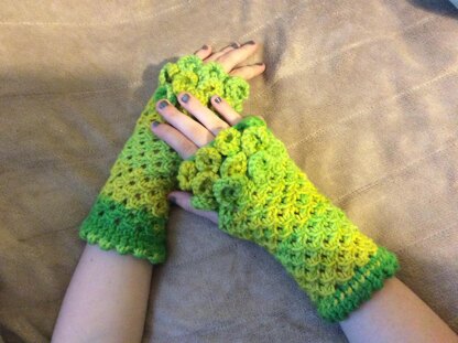 These gloves are KNITTED!!!! I did tons of research to find a knitted dragonscale stitch and could not find one, so I made my own! Part of a 3 piece set: Dragonscale Infinity Scarf and Hat coming soon! If you love dragons as much as I do, you are sure to LOVE this set! Sewing needle is necessary for this project. 4 skeins of Big Twist Premium Spring Tones used for the entire set-gloves, hat, and infinity scarf.