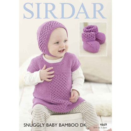 Dress, Bonnet and Bootees in Sirdar Snuggly Baby Bamboo DK - 4669 - Leaflet