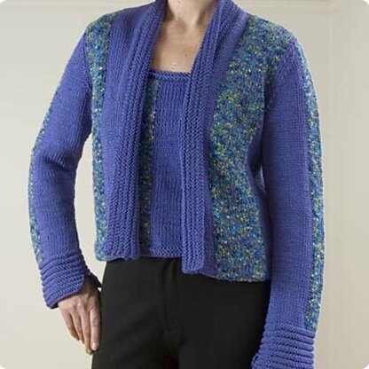 Two yarns, two pieces and too versatile not to add to your warm weather wardrobe. The simple addition of a "ladder" yarn creates easy vertical color stripes.