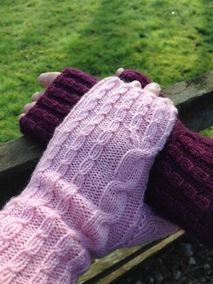 The mitts can be knit in any fingering yarn. A slightly plumper fingering will produce a denser knit but because of the stretchy fabric created by the baby cable rib, fit shouldn't be an issue.