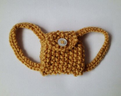Cute but practical little knitted rucksack for your Blythe, Dusty or any other little person that may need a bag to carry stuff in! Worked in moss stitch using a DK (worsted) yarn and fastens with a button.