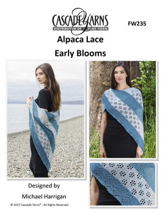 Early Blooms in Cascade Yarns Alpaca Lace - FW235 - Downloadable PDF ist eine Kostenlos Anleitung zum Knitting von Michael Harrigan, die als Herunterladbares PDF in den folgenden Sprachen verfügbar ist: Englisch. Besonders geeignet ist sie für alle, deren Können bei Profi einzustufen ist. Probiere sie noch heute aus und kreiere dein nächstes Meisterwerk!