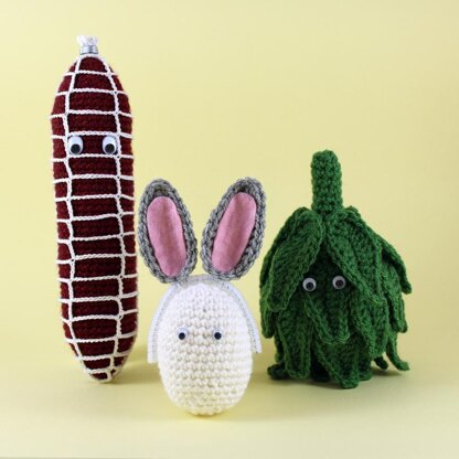 Crochet some of the typical foods of Italian Easter tradition! This bundle includes three amigurumi patterns: Sal the salami, Arthur the artichoke and Raggy the rabbit-egg.