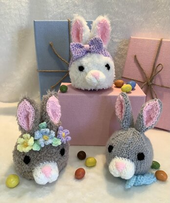 This knitting pattern is for 3 Easter Bunny Chocolate Orange Covers, they are ideal for Easter gifts and are suitable for children over 3 years of age. You will need 3.5mm needles and you can use either King Cole Truffle or King Cole DK yarns for the Heads and Ears. Big Value DK for the trim and a little toy stuffing for the Muzzle and a Chocolate Orange. The finished items measure approximately 12cm high.