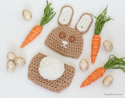 What better way to celebrate this Easter than with this whimsical bunny set, the perfect mix of cozy and cute. With a soft, fluffy cottontail and tiny bunny nose, this crocheted Easter bunny set will be an instant favourite!.. As well as an adorable photo prop outfit for all those playful holiday photos!