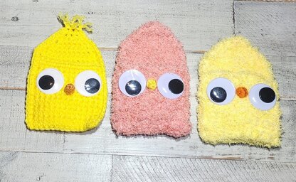 Materials: Worsted weight yarn: 35 yards yellow 1 yard orange Crochet hook size G (4.0 mm) Yarn needle 40-mm wiggly eyes