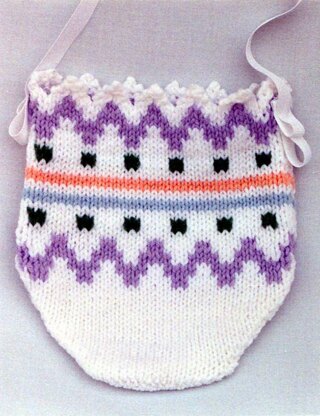 This cute hand knit basket, looks like a cracked egg! It can also be used for a purse or tote. On Easter morning, fill with candy and treats for the children. Then let the children take this to church as a purse! It is easy to knit, using worsted weight yarns. Use knitting needles, US # 5. Make lots of these to go around for all the children!