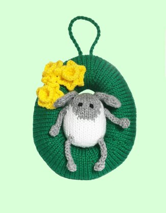 Here is a pattern for an egg shaped Easter Wreath with a cute sheep and daffodils. The sheep can be made on its own as a decoration. The pattern includes instructions for the sheep, wreath and daffodils. Knit on 3.25mm STRAIGHT needles, the wreaths are contoured and stuffed, no wire or foam form is needed which gives this wreath a unique shape.