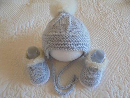 Easy Baby Hat And Shoe Pattern - Shoe Pattern Makes Three Sizes Pre Walkers 0 to 3, 3 to 6 and 6 to 9 Months. Hat Pattern Makes Four Sizes 0 to 5 Years. Made on Two Needles In Baby Aran. Unisex