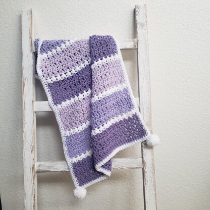 This baby blanket makes the perfect gift for a new baby, or to snuggle your own little one! The blanket works up very quickly and has fun pom poms at each corner! Great project for beginner crocheters, as well as intermediate levels. The pattern is written in English in US Crochet Terms. There are very detailed instructions and lots of step-by-step photos to help along the way. Finished blanket measures approximately 26"x 35" excluding the pom-poms.