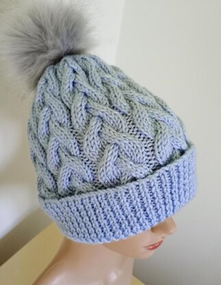 - Knitted on straight needles with Aran weight yarn (worsted) and a cable needle. You can wear with or without a pom pom.