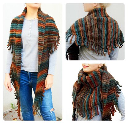 Eine super einfache Häkelanleitung für ein Dreieckstuch. Gehäkelt in einem Stück gleich mit Fransen. Material: Häkelnadel: 6 mm. 400 g Wolle. Wolle: Lion Brand Tweed Stripes Woodlands (206) oder Wolle Ihrer Wahl für Häkelnadelstärke 6 mm. Größe: Die längste Seite hat 190 cm. Höhe 70cm