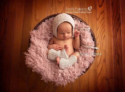 NOTE: This pattern is for the crochet leg warmers only. The pattern for the knit bonnet hat that is pictured is available separately here.