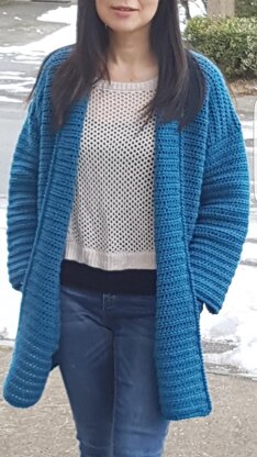 This Cardigan is the perfect go-to Cardigan that can double as a coat! Made entirely in half double crochet with smart construction this Cardigan has everything you'll want in a cardi-coat!