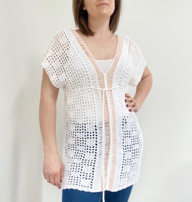 The Easy Peachy Bikini Crochet Cover Up Top can be worn out in the garden as well as on the beach or by the pool and although it was designed as a bikini dress, it works perfectly over a simple strap top and shorts or jeans too!