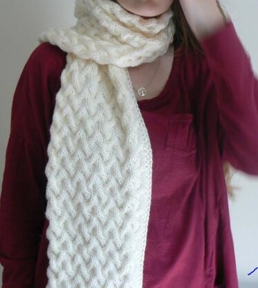 Easy cabled scarf pattern, perfect for first time knitting cables.