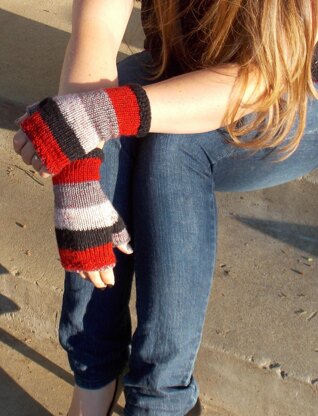 Skills needed for the fingerless gloves are knit, purl, working with two circular needles in rounds, and Kf/b- knit into the front and then into the back of that stitch. For those of you who want both gloves to look “almost” exactly alike, the pattern provides a couple of ways to accomplish this.