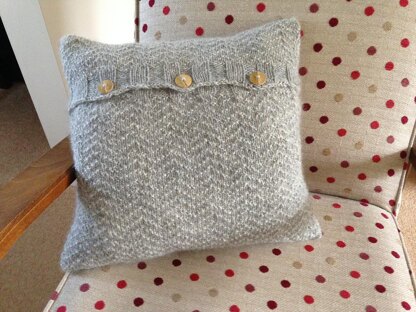 One pair 4mm needles 3 x 100 g balls of Edward or a similar dk weight yarn, three buttons and a 17" x 17" cushion pad.