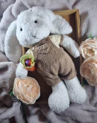 Easter is just around the corner and this means it is the perfect excuse to knit up another bunny! This little guy is called Edward and he’s got quite the sweet tooth! He loves to nibble on chocolate eggs, which he carries around in his little carrot pouch. Edward is dressed in a raglan sleeved t-shirt and adorable dungaree shorts. He is knitted in super soft baby yarn to make him extra cuddly!