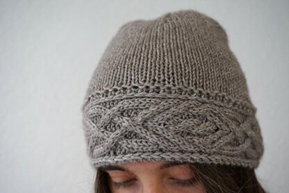 Eilean Mòr is a knitted hat with celtic cables. The Celtic border is knit flat and the ends grafted together. Thereafter stitches are picked up along the upper edge and the hat is finished in the round. She is named by the isle placed in the Loch Finlaggan on Islay.