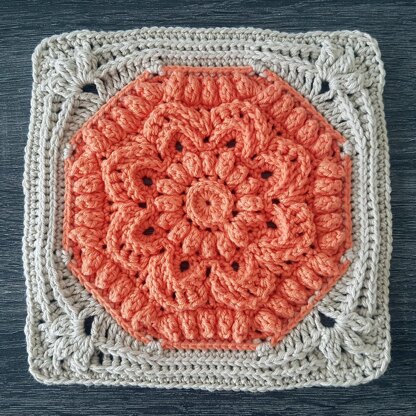 Included in the pattern is a squared-off octagon, so if you prefer, you can just make the square motifs for easier joining. The squared-off motifs measure about 20cm/8” across.