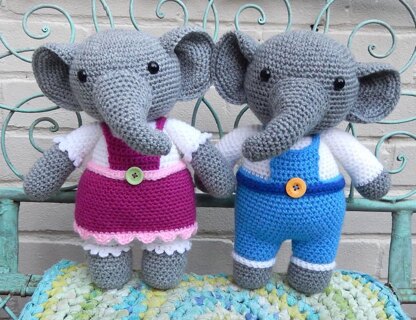 Using light worsted weight (DK/8 ply) yarn and a size D (3.25mm) hook, Eleanor and Elijah each measure approx. 11" (28 cm) tall.