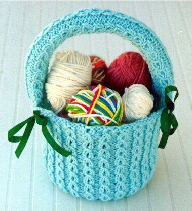 An elegant way to dress up those ice cream buckets you have been saving! This is such a pretty pattern stitch that works up easily. You can use this as a storage container for needlework supplies, craft supplies, and decorate with fresh or silk flowers! OR fill with homemade cookies for a nice gift! This is fun, and practical all at the same time. Uses worsted weight yarns, and circular knitting needle, US # 8. You may want to add the satin ribbon ties for decorating it like we did.
